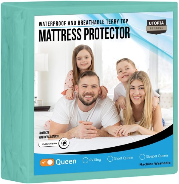 Utopia Bedding Waterproof Mattress Protector Queen Size, Premium Terry Mattress Cover 200 GSM, Breathable, Fitted Style with Stretchable Pockets (Spablue)